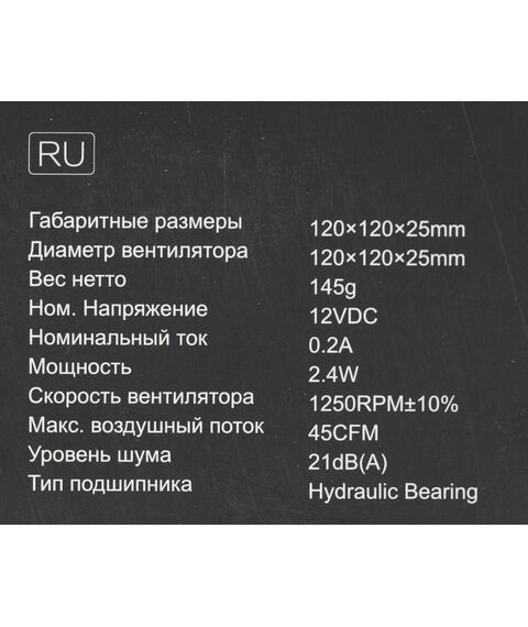 | Потребляемая мощность вентилятора | 2.4 Вт |