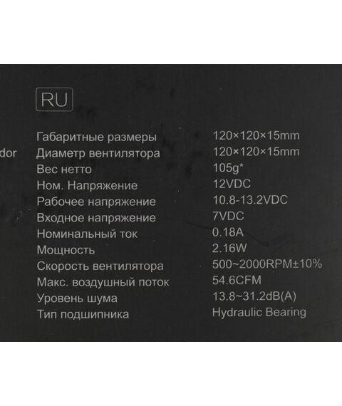 | Потребляемая мощность вентилятора | 2.16 Вт |