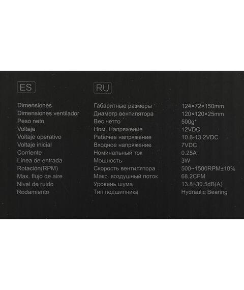 | Макс. скорость вращения вентилятора | 1500 об/мин |
