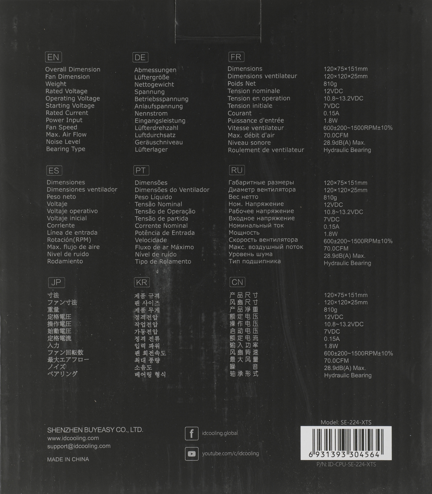 Устройство охлаждения ID-Cooling SE-224-XTS Soc-AM5/AM4/1200/1700/1851 черный 4-pin 16-29dB Al+Cu 220W 650gr RTL
