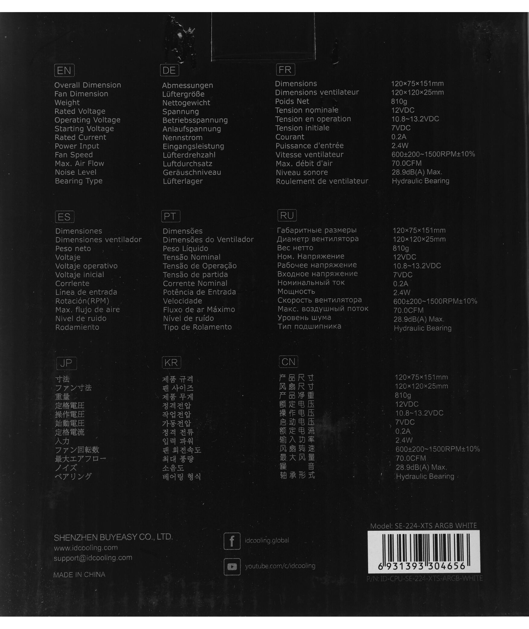 Описание ID-Cooling SE-224-XTS ARGB WHITE
