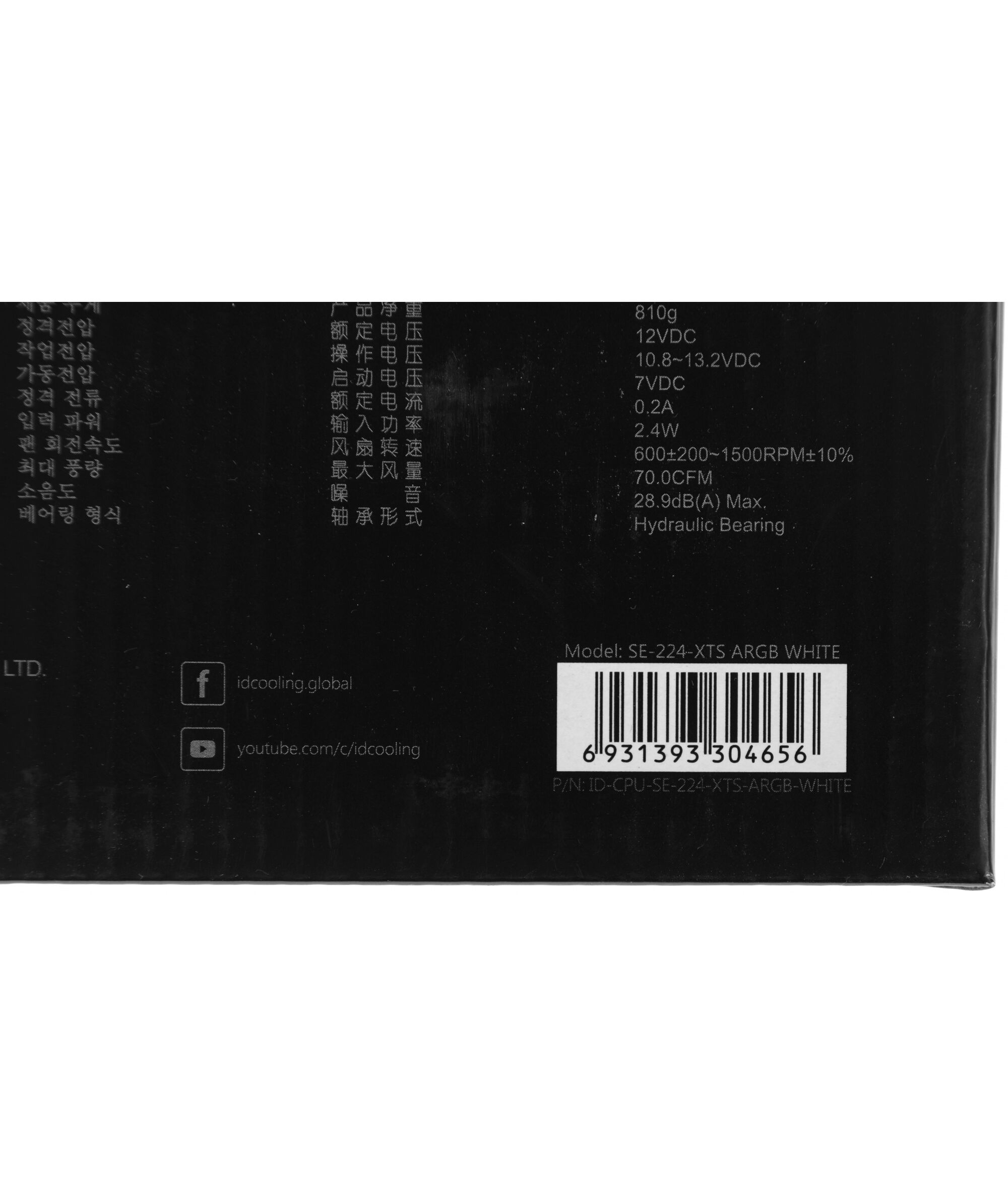 Устройство охлаждения ID-Cooling SE-224-XTS ARGB WHITE Soc-AM5/AM4/1200/1700/1851 белый 4-pin 29dB Al+Cu 220W 650gr RTL