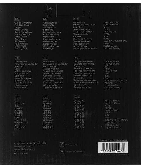 | Потребляемая мощность вентилятора | 1.8 Вт |