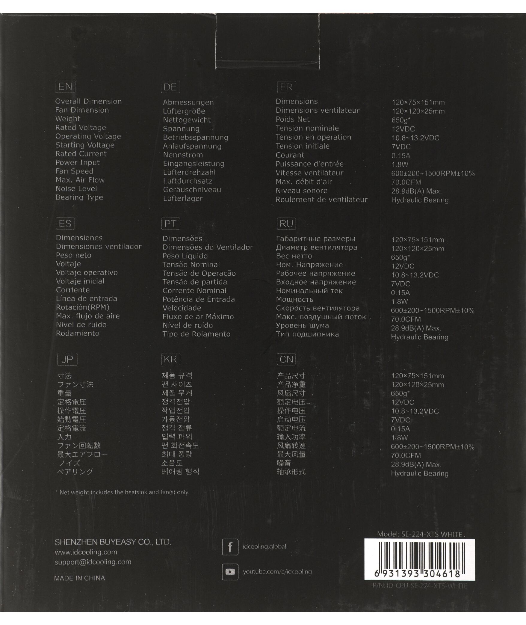 Устройство охлаждения(кулер) ID-Cooling SE-224-XTS WHITE Soc-AM5/AM4/1200/1700/1851 белый 4-pin 16-29dB Al+Cu 220W 650gr RTL