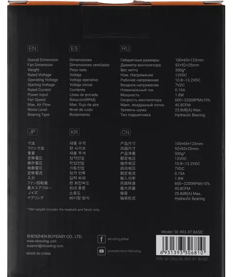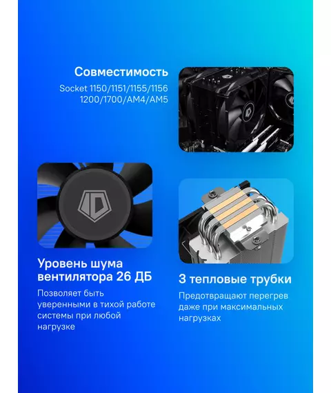 Устройство охлаждения ID-Cooling SE-903-XT Basic Soc-AM5/AM4/1200/1700/1851 черный 4-pin 14-26dB Al+Cu 130W 650gr RTL
