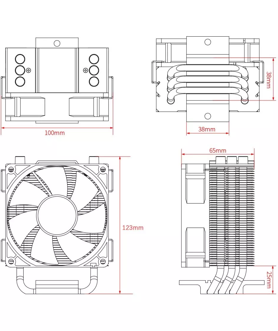 | Тип основания, прилегающего к охлаждаемому устройству | с открытыми тепловыми трубками |