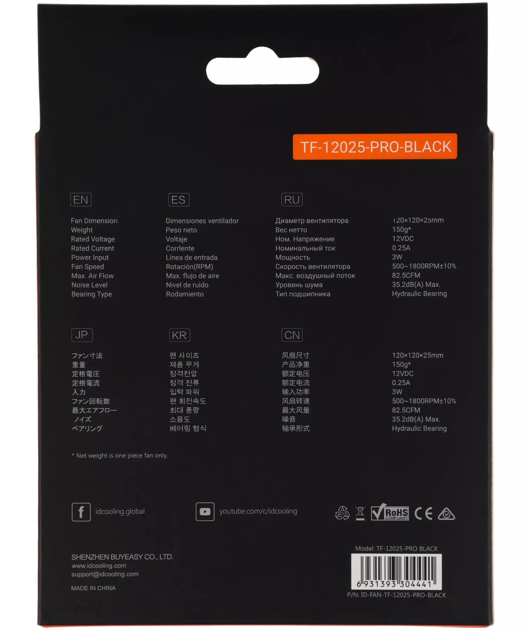 Вентилятор для корпуса ID-Cooling TF-12025-PRO BLACK 120х120x25 черный 4-pin 35.2дБ RTL