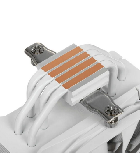 Кулер выполнен из алюминия и меди (Al/Cu), что обеспечивает высокую прочность и долговечность. Четыре тепловых трубки диаметром 6 мм эффективно отводят тепло от процессора, обеспечивая стабильную работу системы даже при высоких нагрузках.