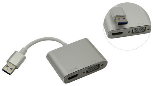 Кабель-адаптер USB3.0 -> HDMI(F)+VGA(15F)