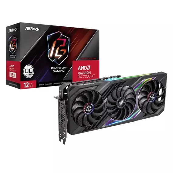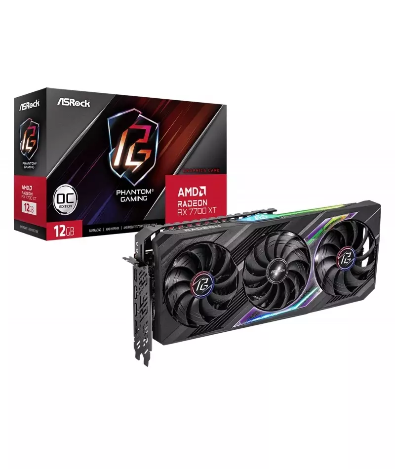 Видеокарта ASRock Radeon RX 7700XT 12Gb PCI-E 4.0 192bit GDDR6 2276/18000 HDMIx1 DPx3 HDCP RTL [RX7700XT PG 12GO]