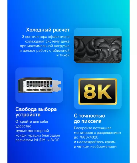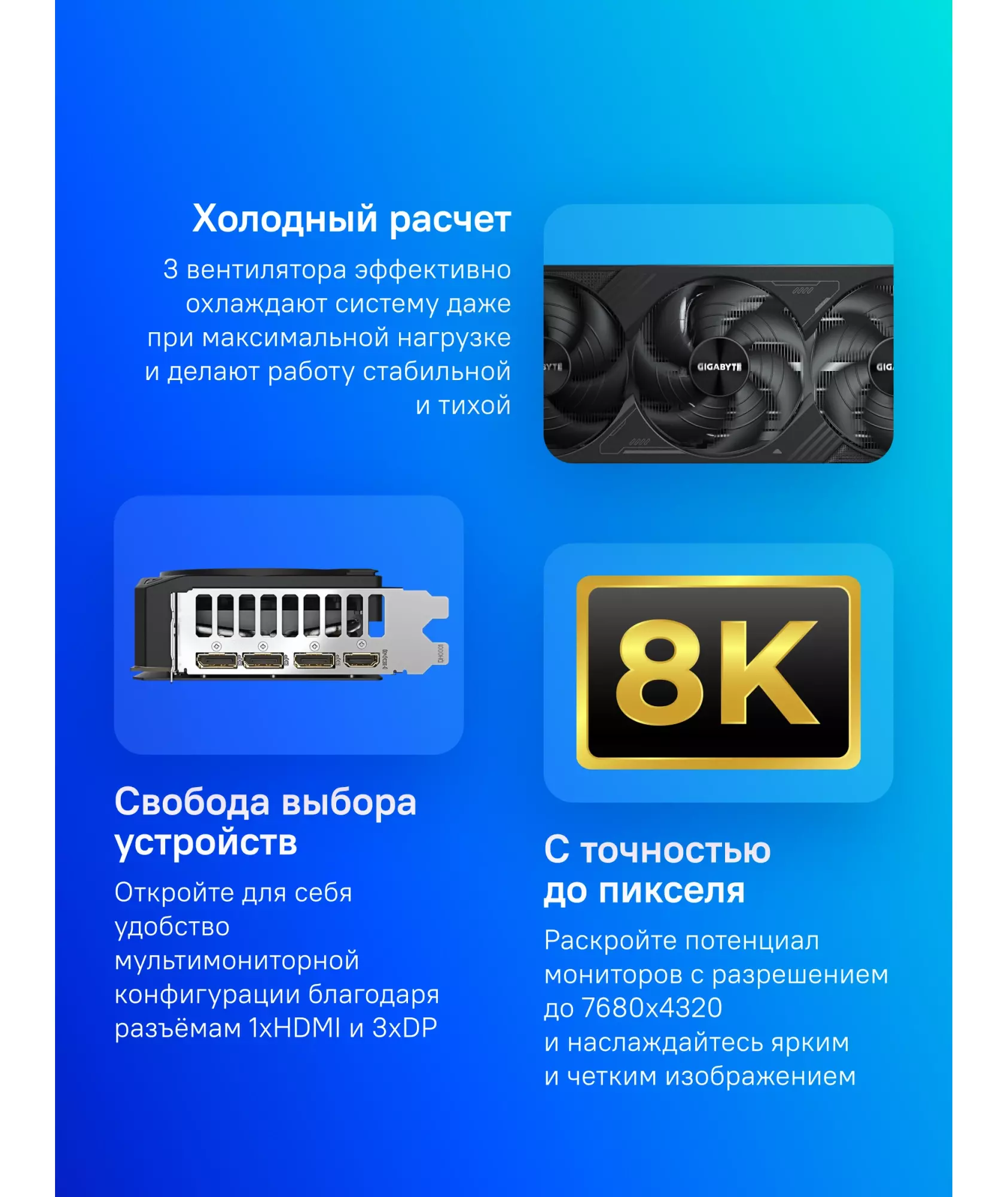 Видеокарта GigaByte GeForce RTX 5080 16Gb PCI-E 5.0 256bit GDDR7 2670/30000 HDMIx1 DPx3 HDCP RTL [GV-N5080WF3OC-16GD 1.0]