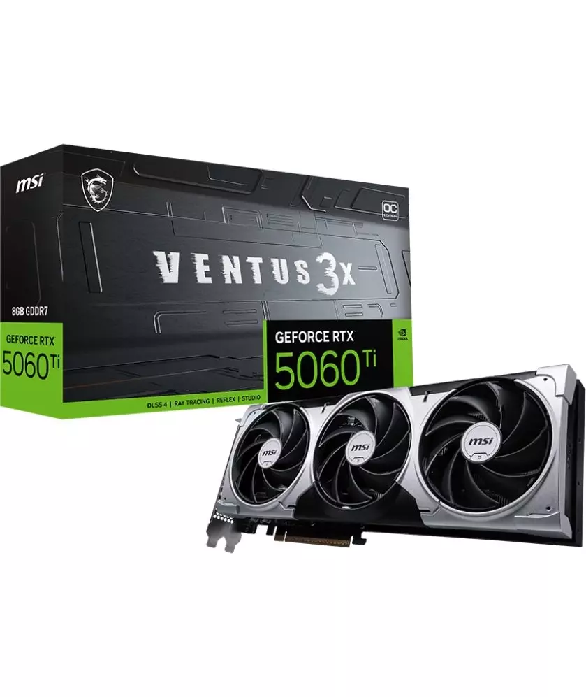 Видеокарта MSI GeForce RTX 5060TI 8Gb PCI-E 5.0 128bit GDDR7 2602/28000 HDMIx1 DPx3 HDCP Ret [RTX 5060 TI 8G VENTUS 3X OC]