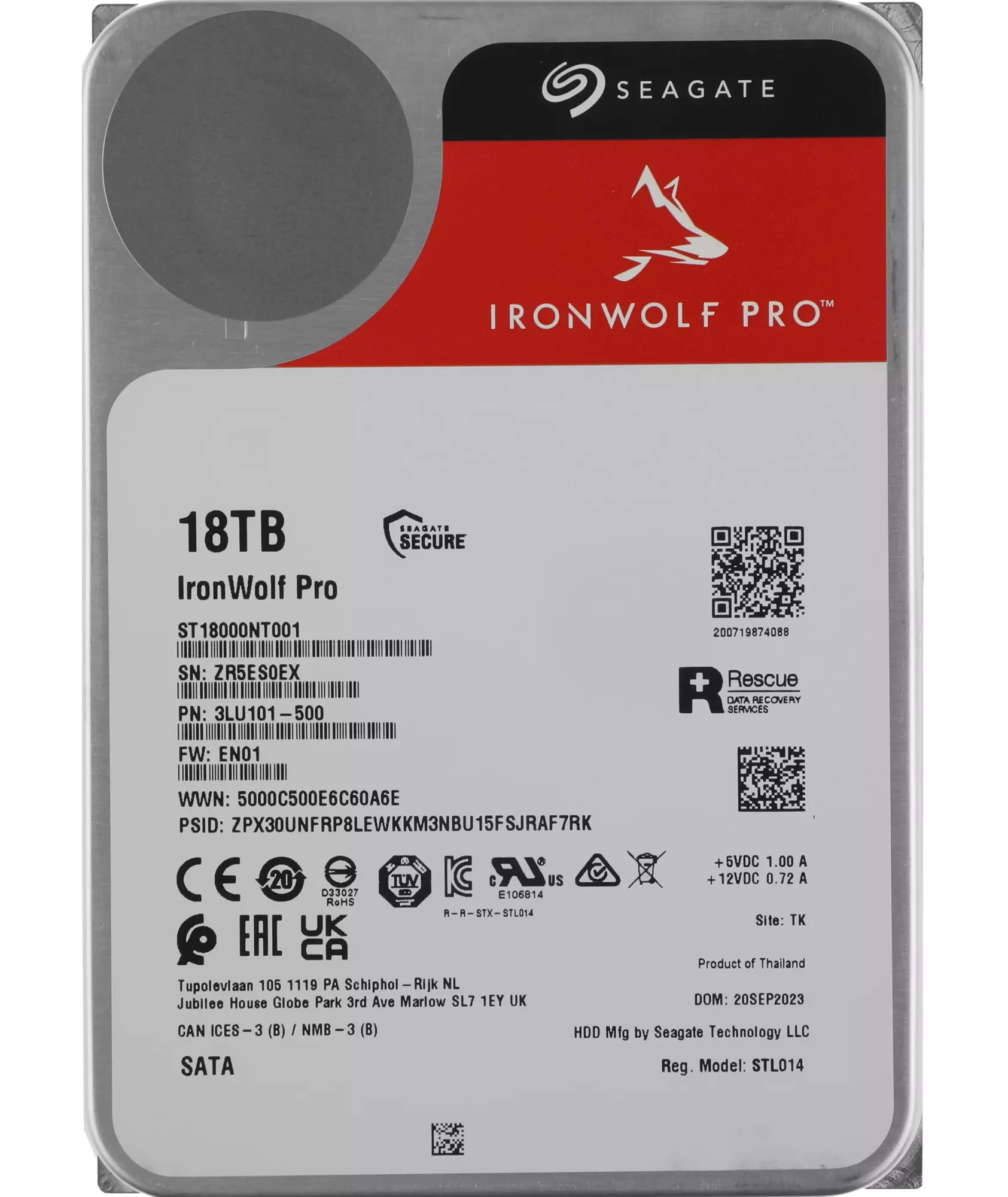 Наличие товара Seagate 18TB NAS Ironwolf Pro 512E [ST18000NT001]