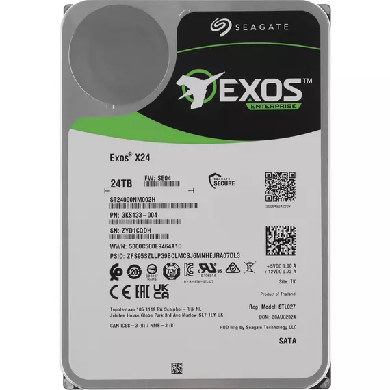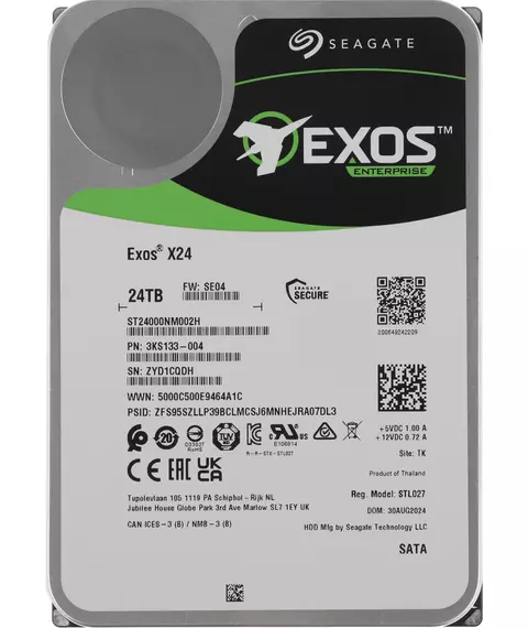 Описание Seagate SATA-III 24TB Exos X24 4KN (7200rpm) 512Mb 3.5"