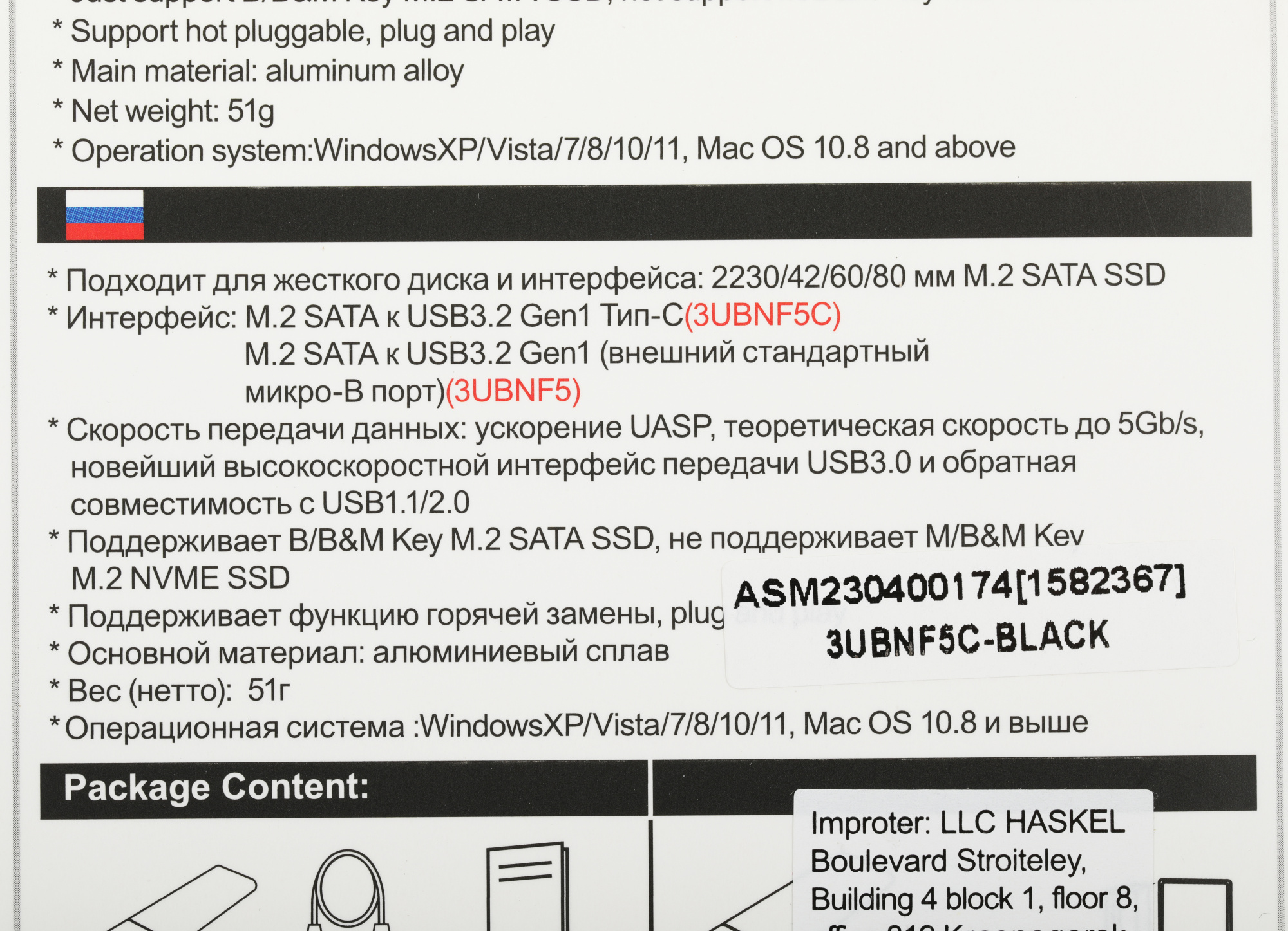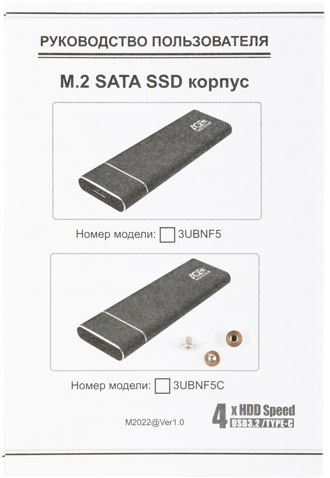 Внешний корпус SSD AgeStar 3UBNF5C SATA III USB 3.0 USB 3.0 Type-С алюминий черный M2 2280 B-key