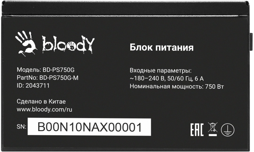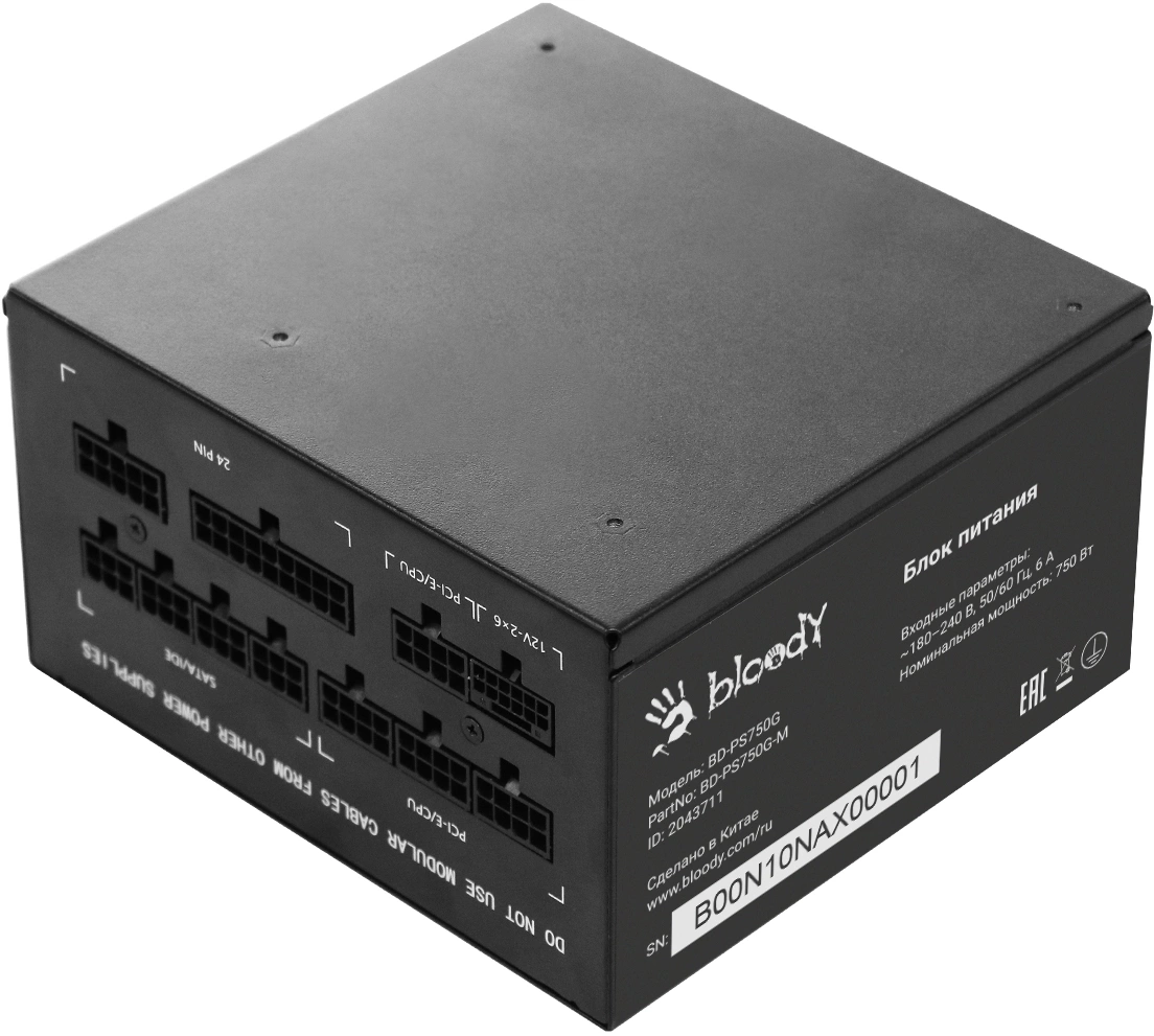 Блок питания Bloody BD-PS750G-M ATX 750W 80+ gold (20+4pin) APFC 120mm fan 6xSATA Cab Manag RTL