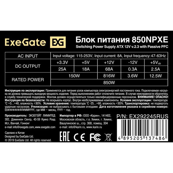 Описание Exegate 850NPXE [EX292245RUS-S]