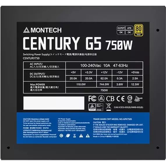 Описание Montech ATX 750W Century Gold G5 [CENTURY GOLD G5 750]