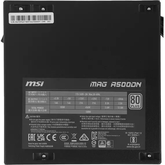 Описание MSI ATX 500W MAG A500DN [306-7ZP6A11-809]