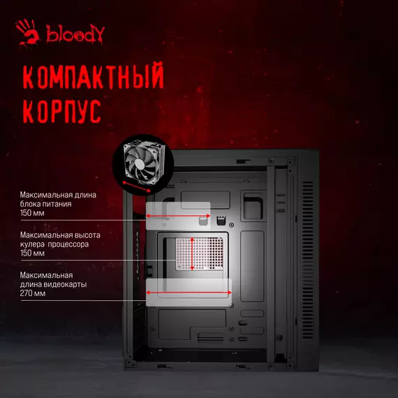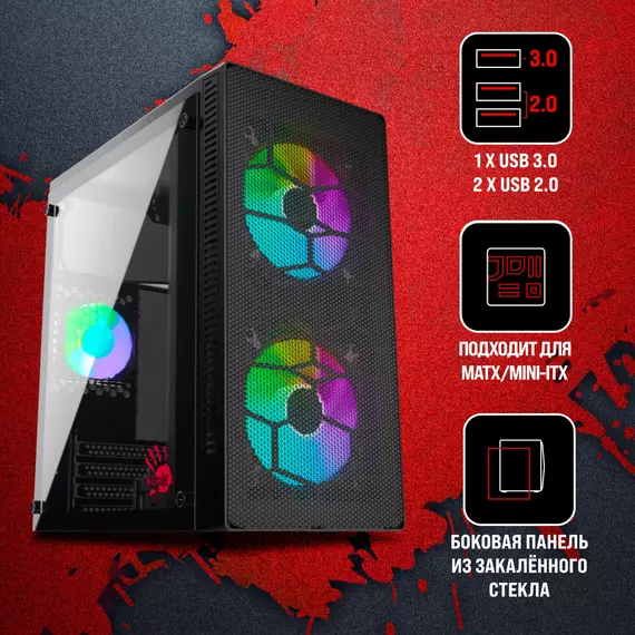 Корпус Bloody BD-CC101 черный без БП mATX 1x80mm 1x92mm 2x120mm 2xUSB2.0 1xUSB3.0 audio [BD-CC101-BK]