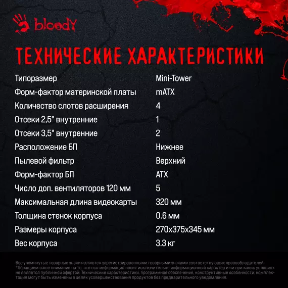 Корпус Bloody BD-CC105-BK черный без БП mATX 5x120mm 1xUSB2.0 1xUSB3.0 audio bott PSU