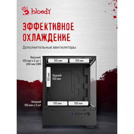 Корпус Bloody CC-125-BK черный без БП mATX 5x120mm 2xUSB2.0 1xUSB3.0 audio bott PSU