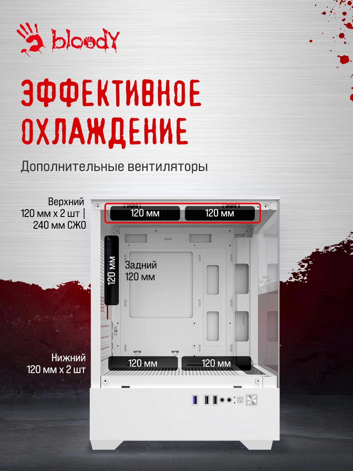 | Число доп. вентиляторов 120 мм | 5 |