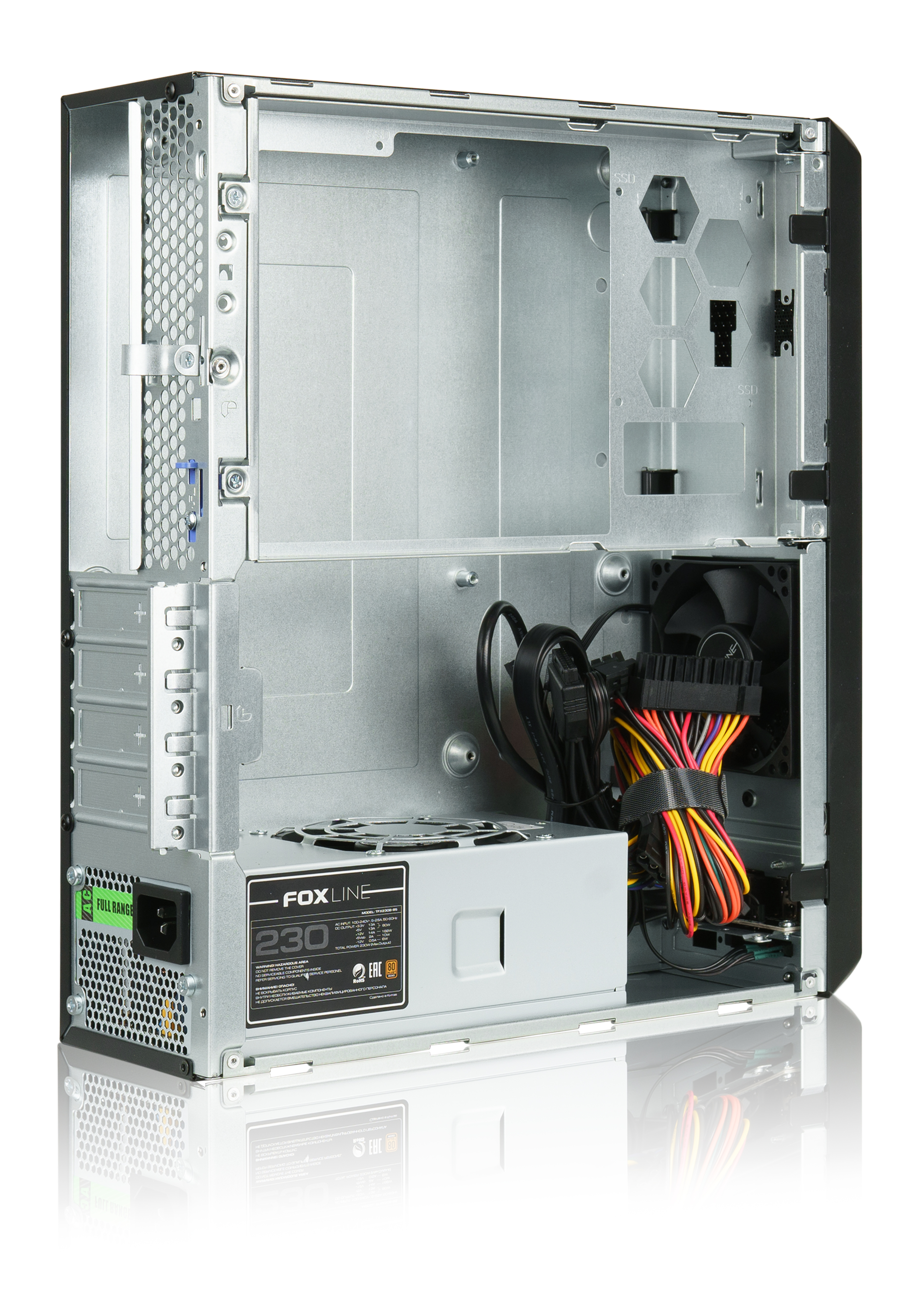 Корпус с блоком питания Foxline FL-1004-TFX230B-85 mATX case, black, w/PSU TFX 230W 85+ bronze, w/2xUSB3.0, HDA, w/pwr cord, w/8cm FAN