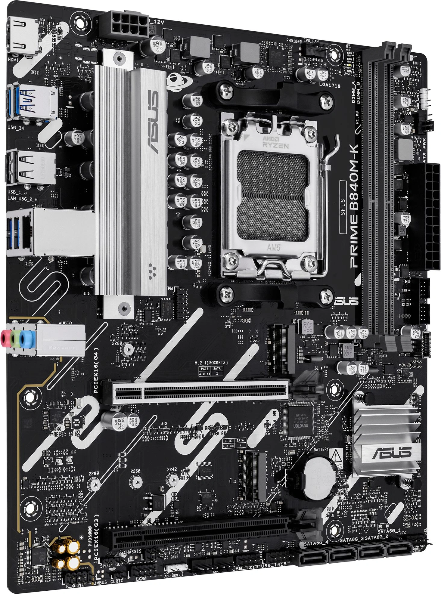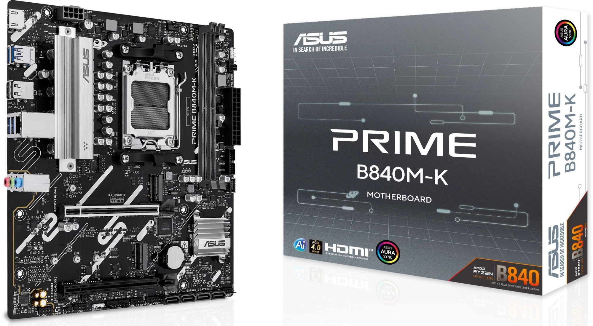 Материнская плата Asus PRIME B840M-K Socket AM5, AMD B840, 2xDDR5, mATX, AC`97 8ch(7.1), 2.5Gg, RAID, HDMI