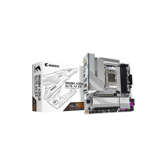 Материнская плата GigaByte B650M A ELITE AX ICE SocketAM5 AMD B650 4xDDR5 mATX AC97 8ch(7.1) 2.5Gg RAID+HDMI+DP