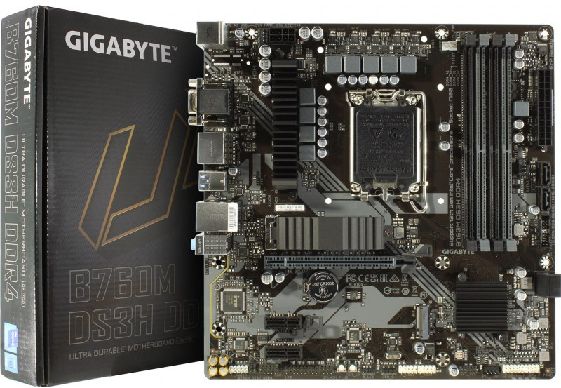 Материнская плата GigaByte B760M DS3H DDR4 LGA1700 B760 PCI-E Dsub+HDMI+2xDP 2.5GbLAN SATA MicroATX 4DDR4 (RTL)