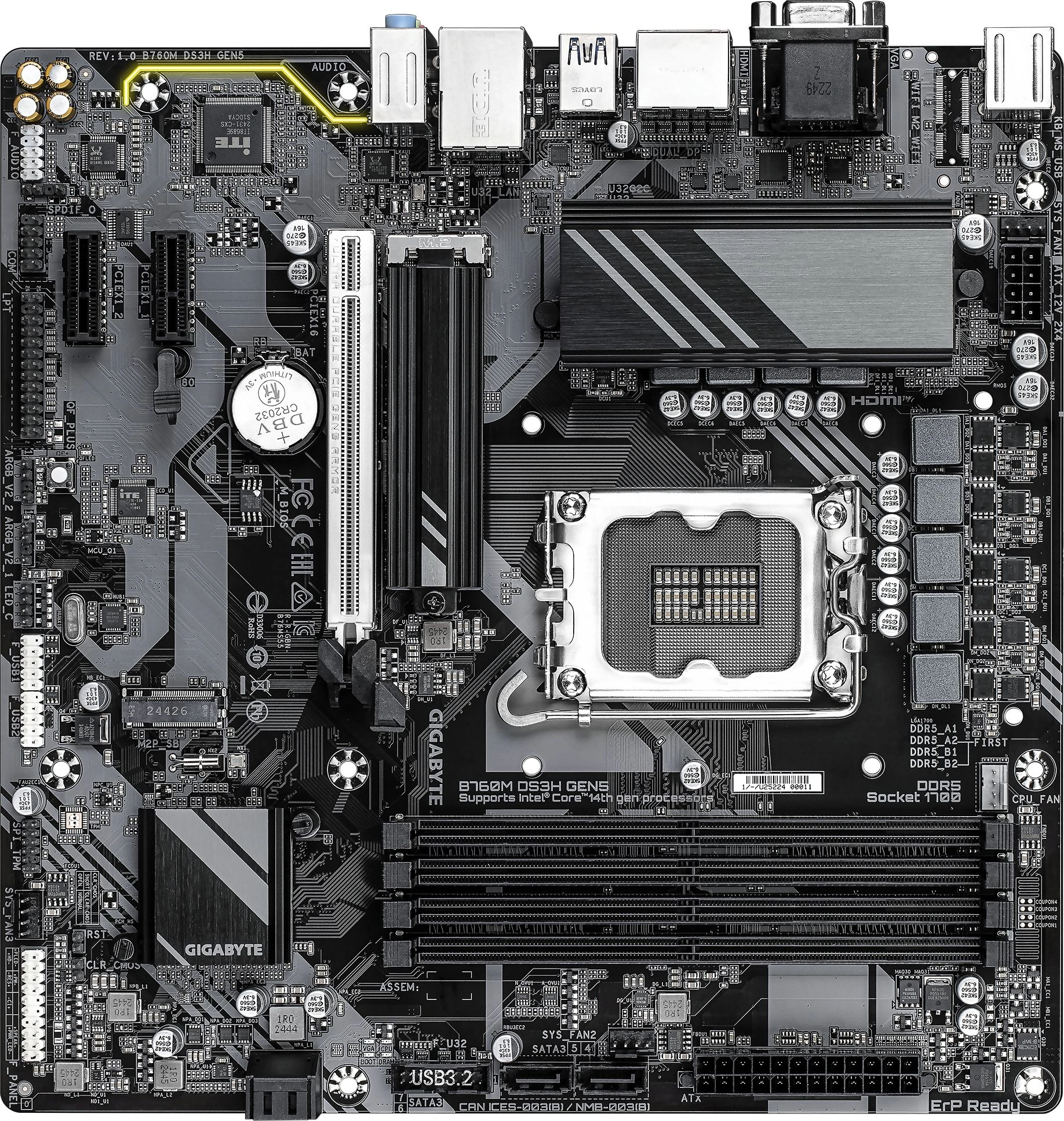 Материнская плата GigaByte B760M DS3H GEN5 Soc-1700 Intel B760 4xDDR5 mATX AC`97 8ch(7.1) 2.5Gg RAID+VGA+HDMI+DP
