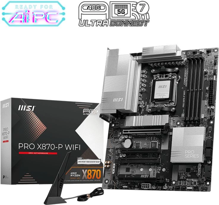 Материнская плата MSI PRO X870-P WIFI SocketAM5 AMD X870 4xDDR5 ATX AC`97 8ch(7.1) 5Gigabit RAID+HDMI