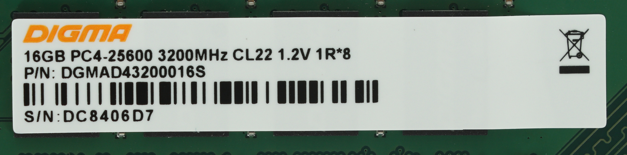 Оперативная память Digma 16Gb DDR4 3200MHz PC4-25600 CL22 DIMM 288-pin 1.2В single rank RTL [DGMAD43200016S]