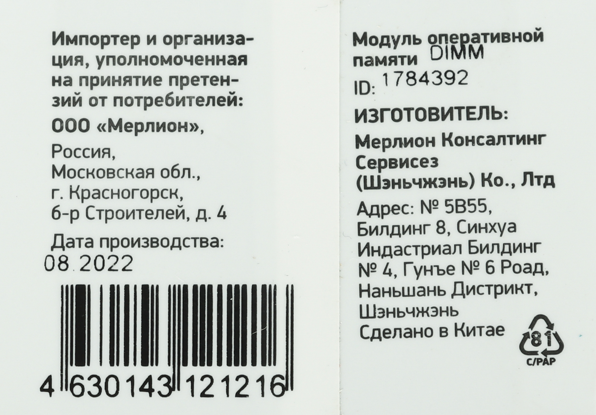 | Форм-фактор | DIMM |