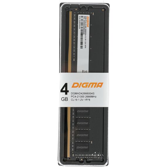 Оперативная память Digma 4Gb DDR4 2666MHz PC4-21300 CL19 DIMM 288-pin 1.2В single rank RTL [DGMAD42666004S]