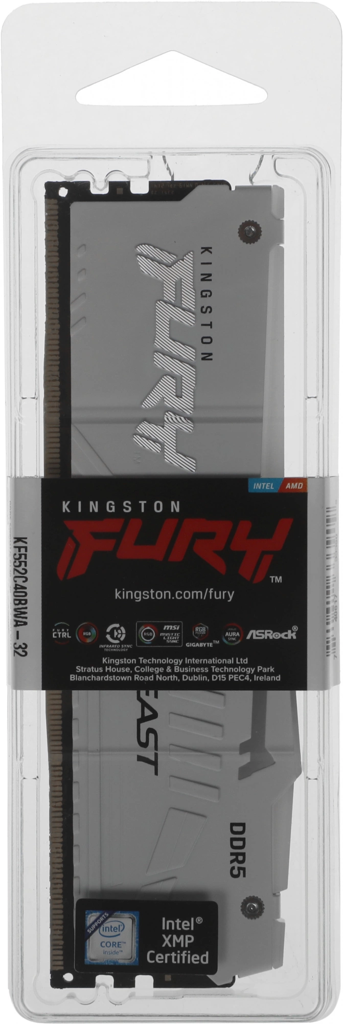 Память Kingston 32GB Fury Beast RGB DDR5 5200MHz Gaming PC5-41600 CL40 DIMM 288-pin 1.25В single rank с радиатором RTL [KF552C40BWA-32]