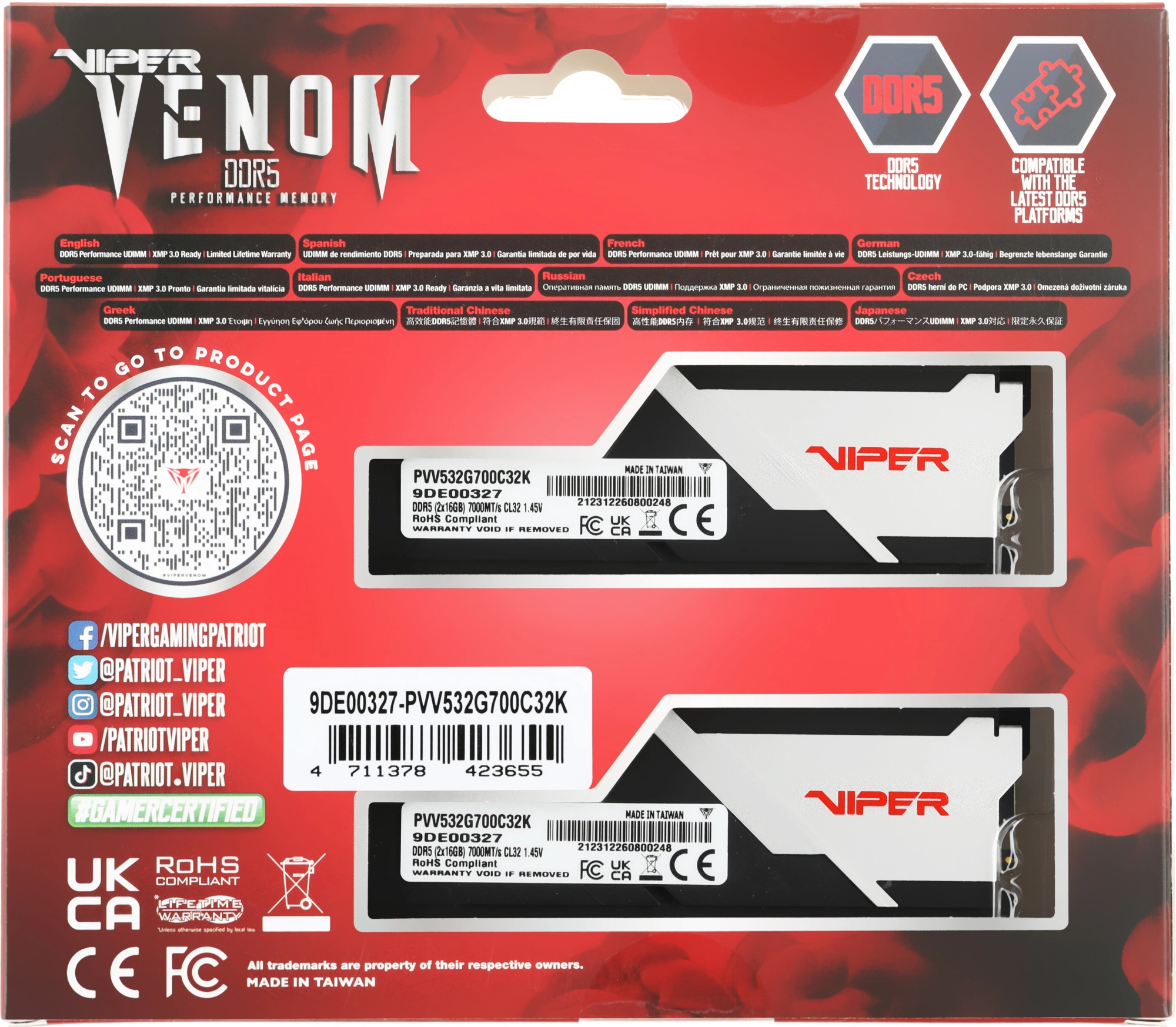 Описание Patriot Viper Venom Gaming 32Gb Kit 2x16Gb [PVV532G700C32K]