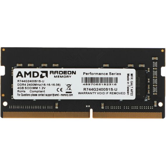 Модуль памяти AMD Radeon R7 Performance Series 4Gb DDR4 2400MHz PC4-19200 CL16 SO-DIMM 260-pin 1.2В RTL [R744G2400S1S-U]