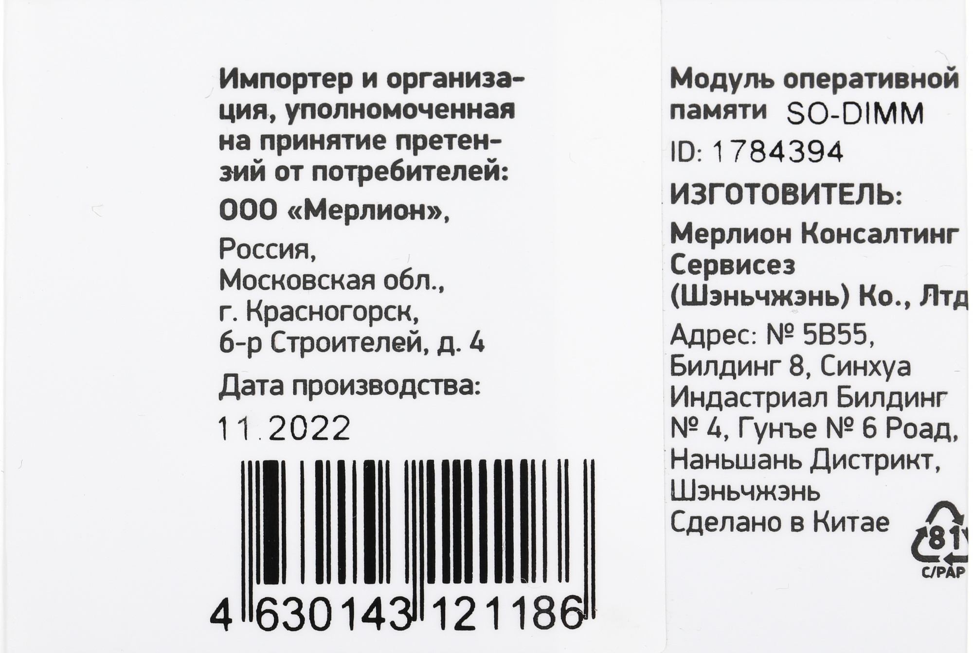| Форм-фактор | SO-DIMM |