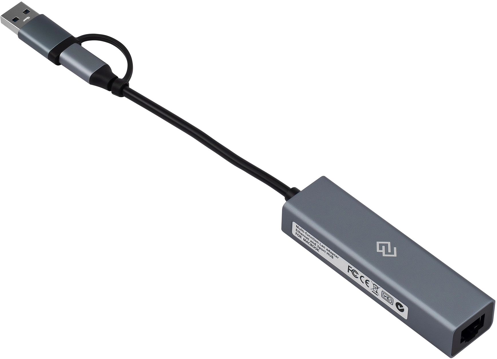 Разветвитель Digma DHUB-LAN-4port USB-C + USB-A 4 порт. серебристый