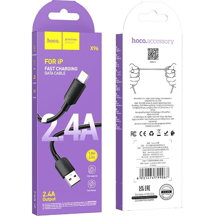 Кабель Hoco X96 Hyper iP USB (m)-Lightning (m) 1м черный
