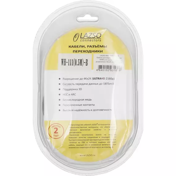 Описание LAZSO HDMI (m)/HDMI (m) 0.5м. [WH-111(0,5M)-B]