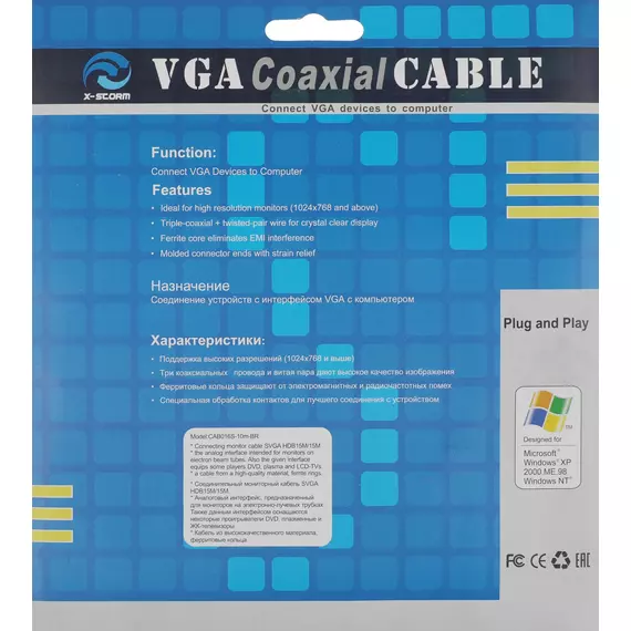 Удлинитель для кабелей VGA, передающих видеосигнал от системных блоков и ноутбуков к мониторам, телевизорам, проекторам и прочим устройствам вывода изображения. Длина кабеля 10 метров.