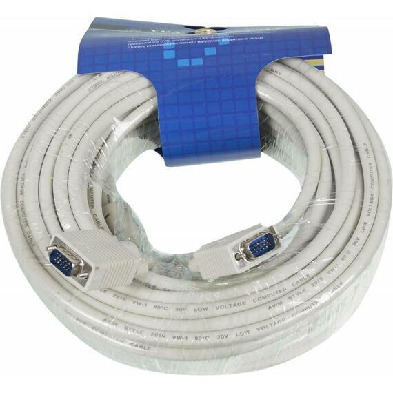 VGA кабель длиной 20 метров, дающий огромные возможности по размещению оборудования в больших помещениях. Встроенные ферритовые кольца блокируют помехи искажающие идущий по проводу сигнал, таким образом повышая его качество.