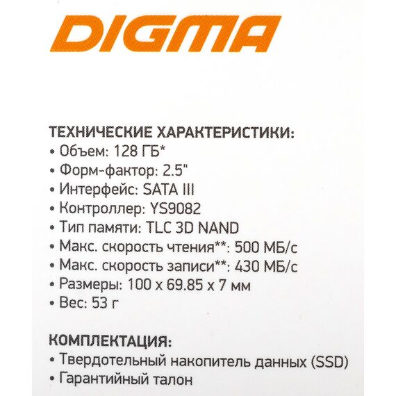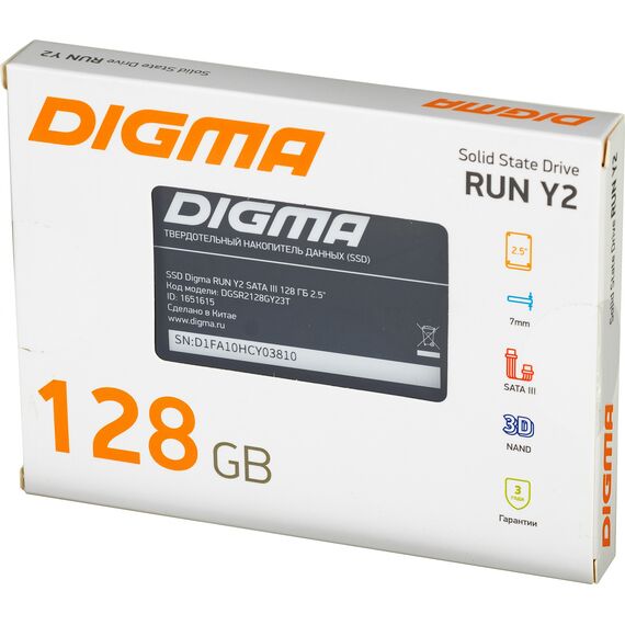 Накопитель SSD Digma 128GB Run Y2 SATA-III 2.5" [DGSR2128GY23T]