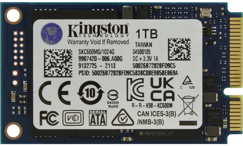 SSD-накопитель Kingston 1Tb KC600 mSATA [SKC600MS/1024G]
