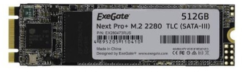 Модуль памяти Exegate 512 Gb Next Pro+ M.2 2280 B&M 6Gb/s 3D TLC OEM [EX280473RUS]