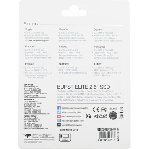 Наличие товара Patriot 1.92TB Burst Elite [PBE192TS25SSDR]