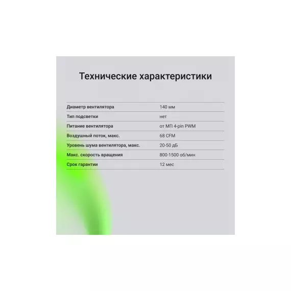 | Макс. скорость вращения вентилятора | 1500 об/мин |